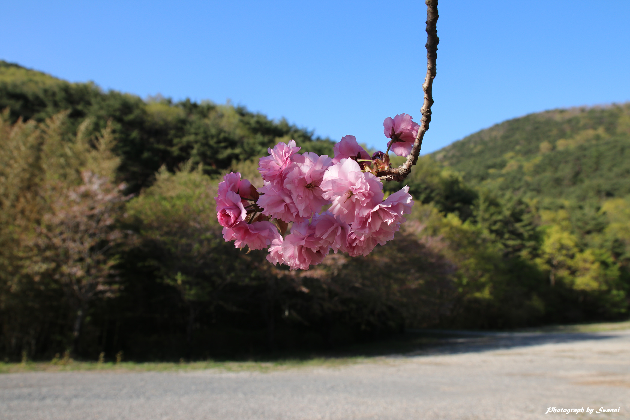▲겹벚꽃을 배경으로 기념사진도 찍고...